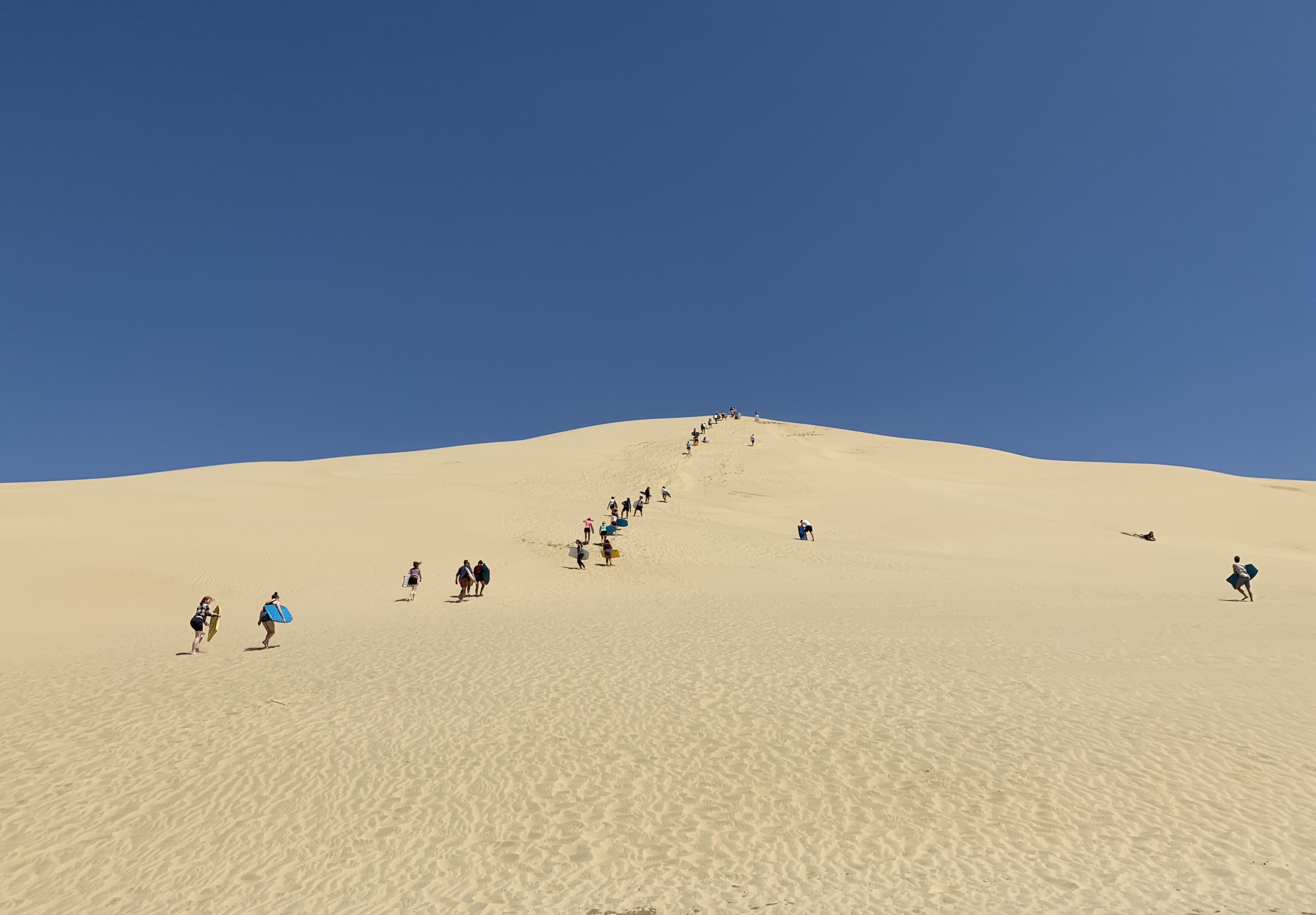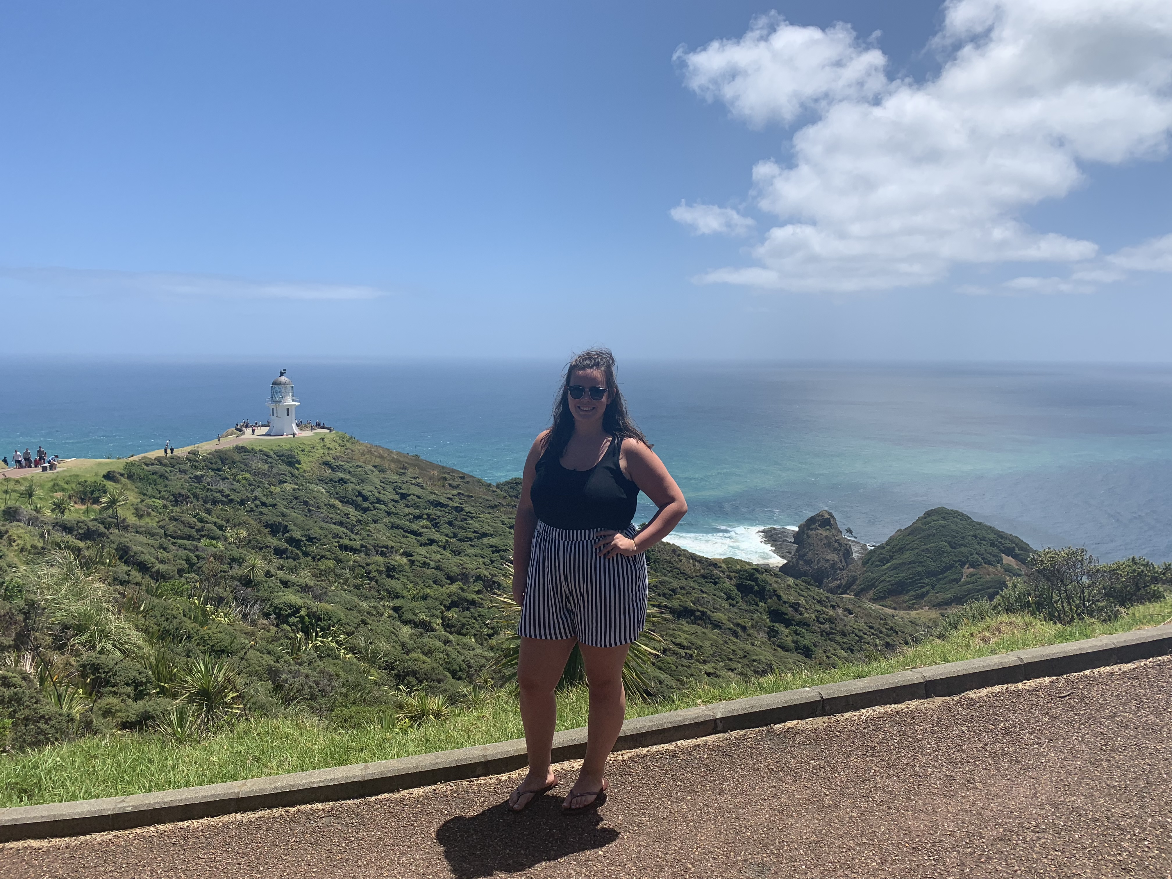 The next day, after only a few hours sleep, we were up very early to go on a day trip to Cape Reinga, the very top of the North island— it was quite a journey! On route, we stopped at the Puketi Kauri forest where we had a short walk around an elevated walkway to see some very old trees and the native bush. We also stopped at the giant sand dunes where we climbed to the top to body surf down, it was quite the climb and many of us could only go one time!