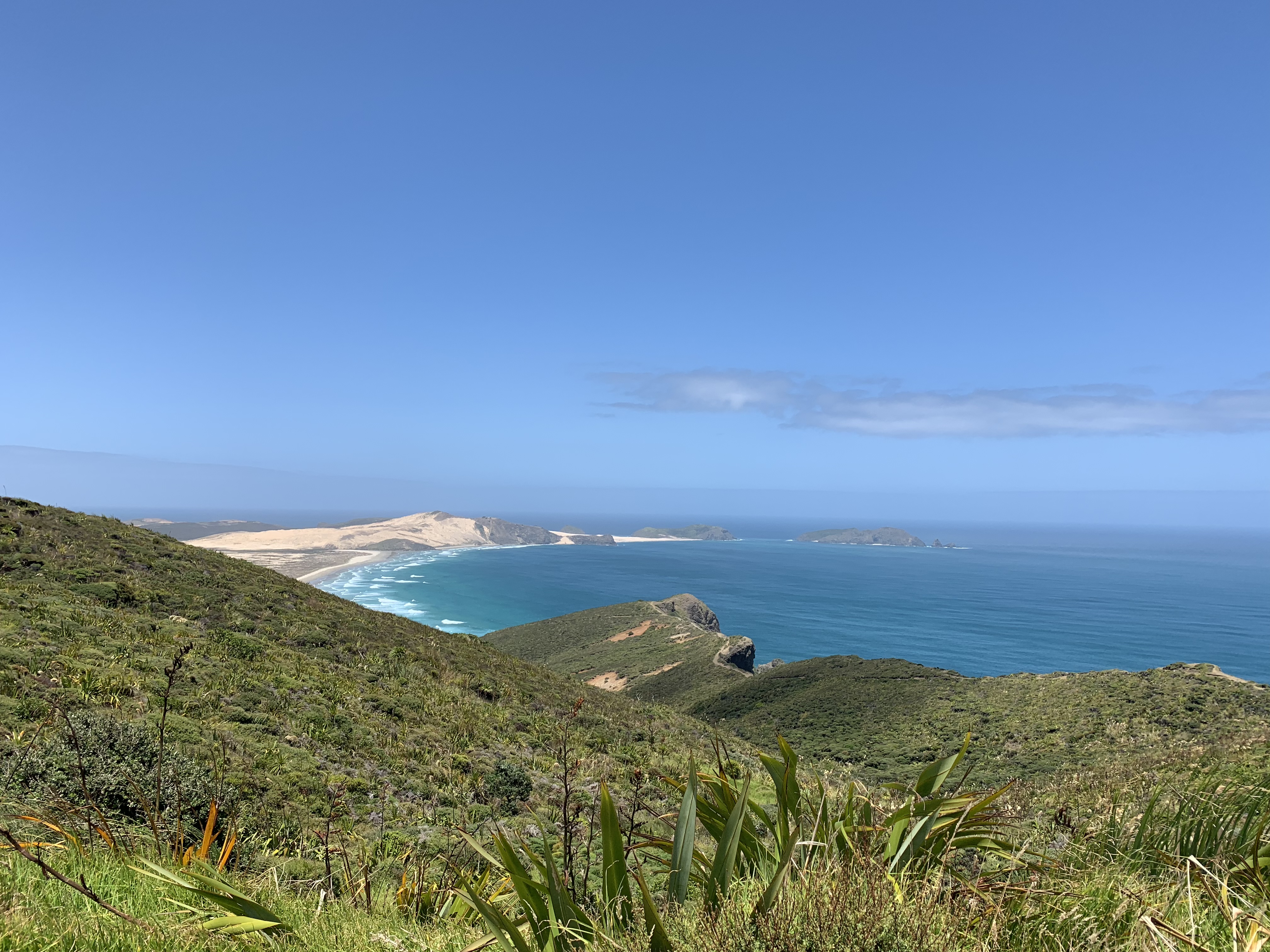 Next stop was the highlight of the trip— Cape Reinga. The views from this region were spectacular and the area seemed pretty untouched. The lighthouse was surrounded by panoramic blue skies and sea and looks over the point where the Tasman sea and the Pacific Ocean meet— its very scenic. On our way back to Paihia we cruised along the sands at 90 mile beach (which isn’t actually 90 miles long) and had a photo stop and a chance to dip our feet in the freezing (!!!) Pacific Ocean. We then made our final stop at a little fishing town for fish and chips, it was a great way to end the day.